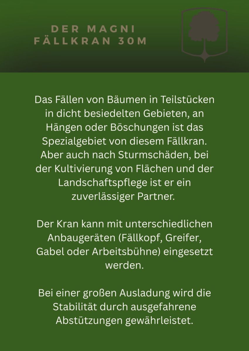 Unsere leistungsstarke Forstmaschine - Der Magni Fällkran 30m